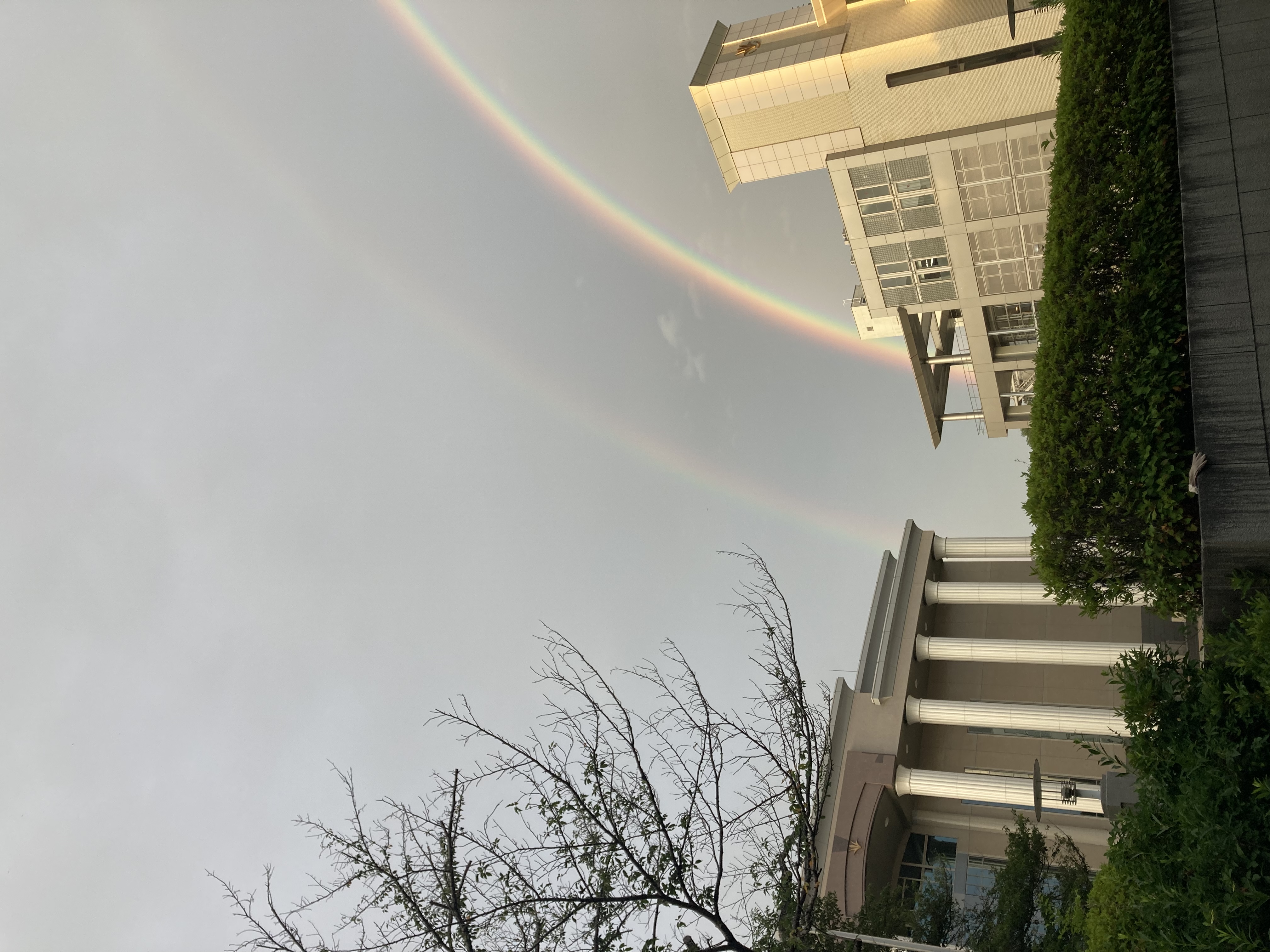ほんの数分であろう二重の虹を見事に捉えています。撮影者の未来への希望と強い決意が伝わってくるようです。