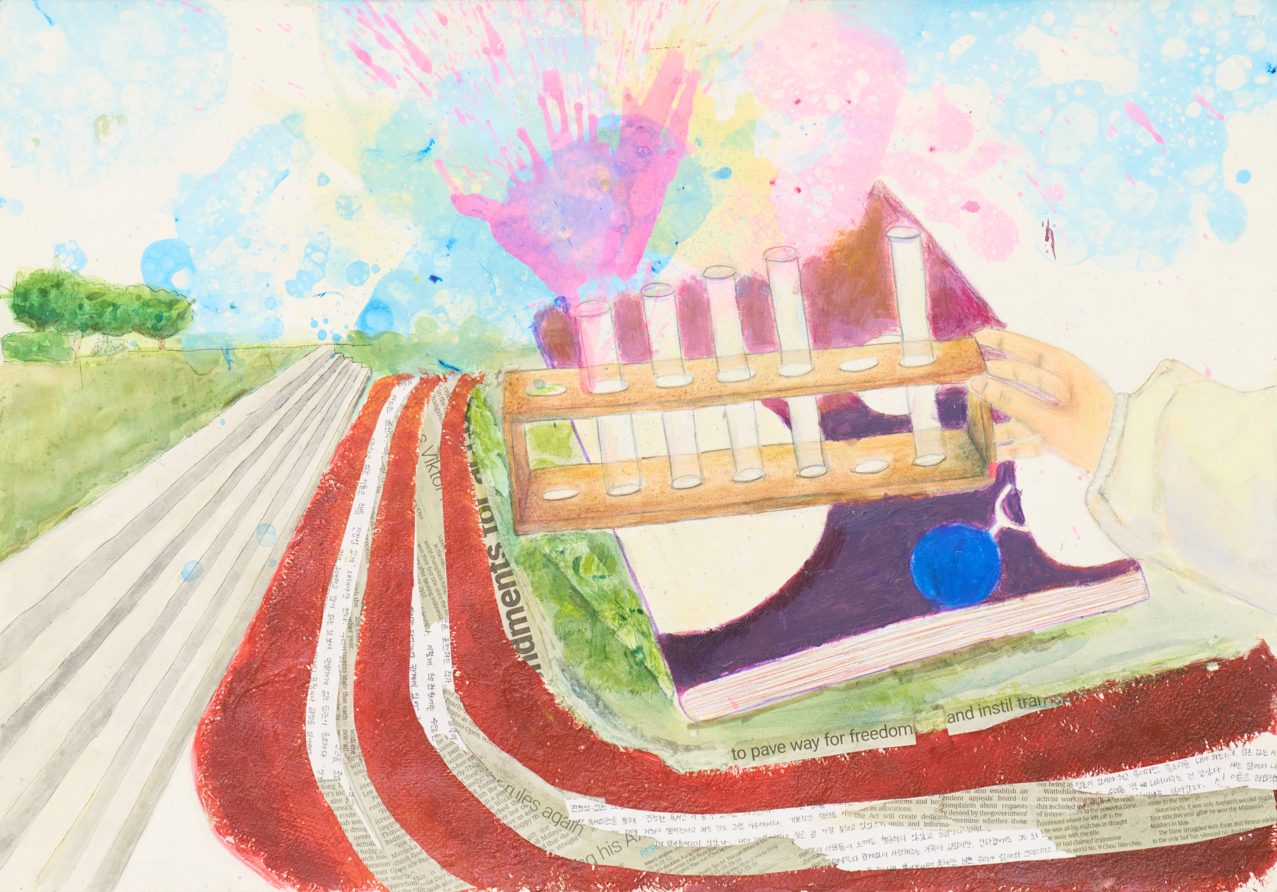 紙に描いたミクストメディア
